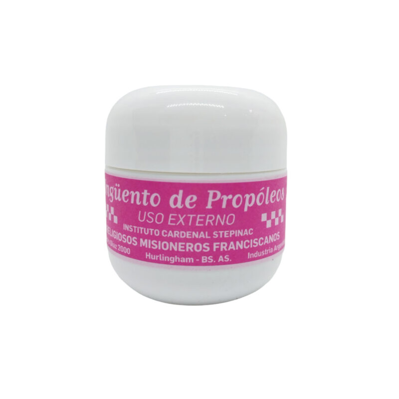 Ungüento de Propóleo.Bálsamo natural, cicatrizante y regenerador dérmico, ideal para tratar afecciones de la piel como heridas, quemaduras, eccemas, dermatitis, acné, hongos y resequedad. Gracias a sus propiedades antimicrobianas y antiinflamatorias, protege y calma la piel irritada, siendo útil en la regeneración de tejidos.