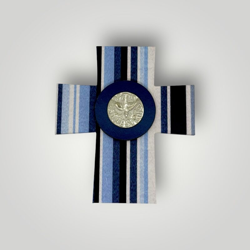 Hermosa cruz decorativa en tonos azules, ideal para ambientar espacios de oración, dormitorios o regalar en ocasiones especiales.