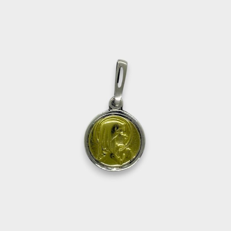 La Virgen Niña representa la pureza, la ternura y el comienzo de una vida entregada a Dios, esta imagen es muy querida para pedir protección sobre los más pequeños.Medalla circular delicadamente elaborada en plata 925 con un aplique central en dublé de oro que resalta la figura de la Virgen en oración, brindando un contraste cálido y distinguido. Por su tamaño y significado es ideal para acompañar y proteger desde los primeros momentos.