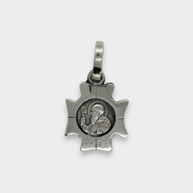 La Medalla de San Benito es mucho más que un objeto de devoción; es un poderoso símbolo de fe y protección que nos recuerda la presencia constante de Dios en nuestra vida.Esta medalla de diseño exclusivo se destaca por su delicado borde con detalles en relieve, realizada íntegramente en plata 925. Ideal para ser llevada diariamente como una protección personal o para obsequiar a un ser querido.