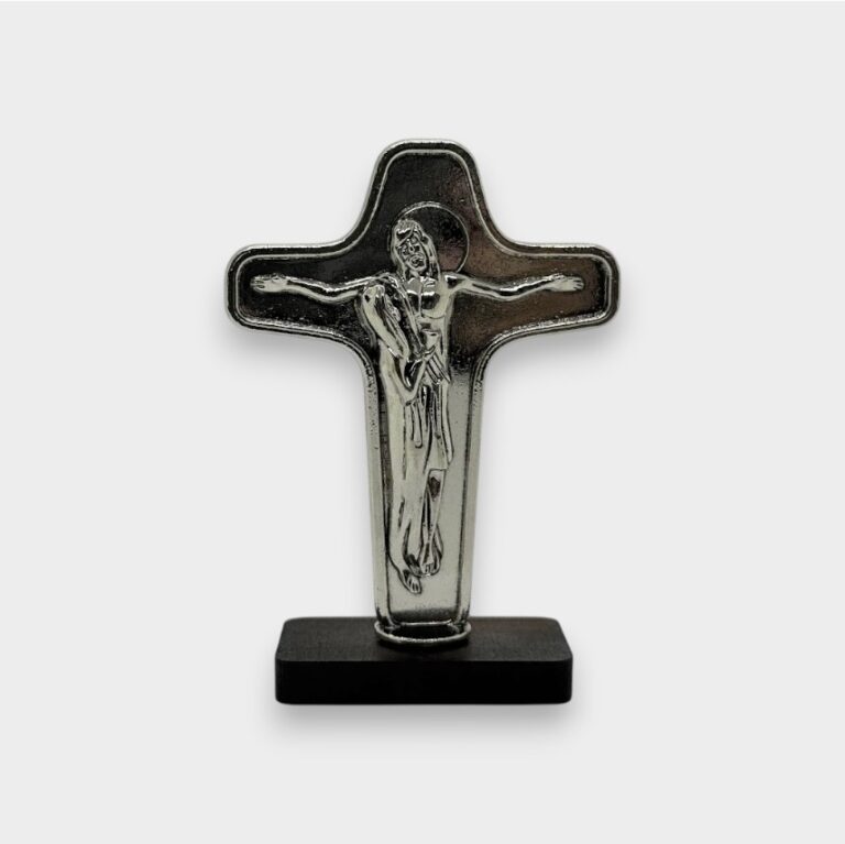 Cruz de la Unidad con base de madera fija (no desmontable), ideal para colocar en mesas de luz, escritorios, altares o espacios de oración.