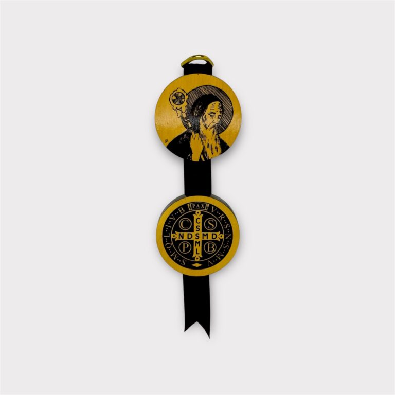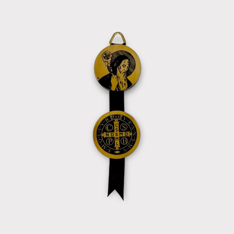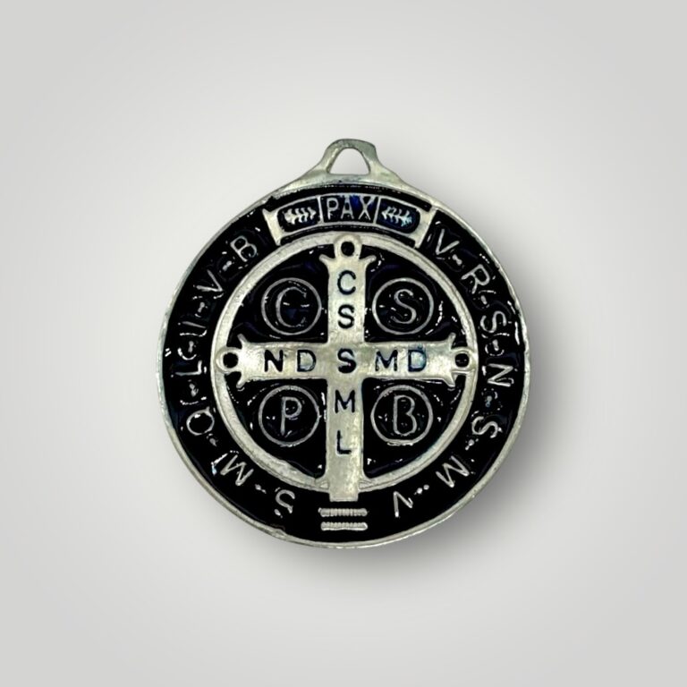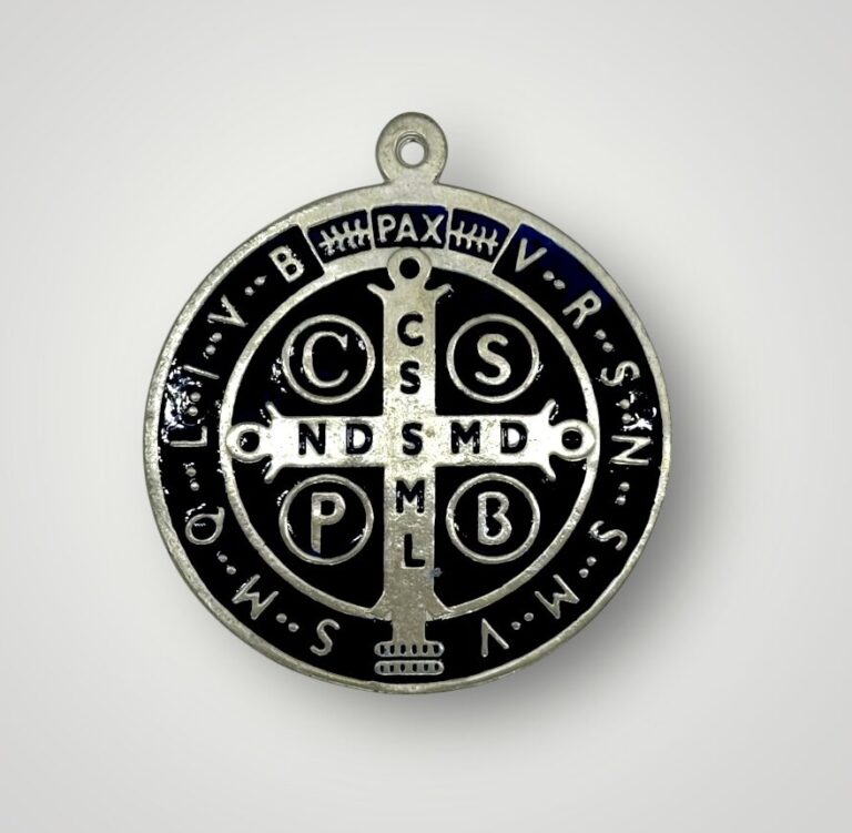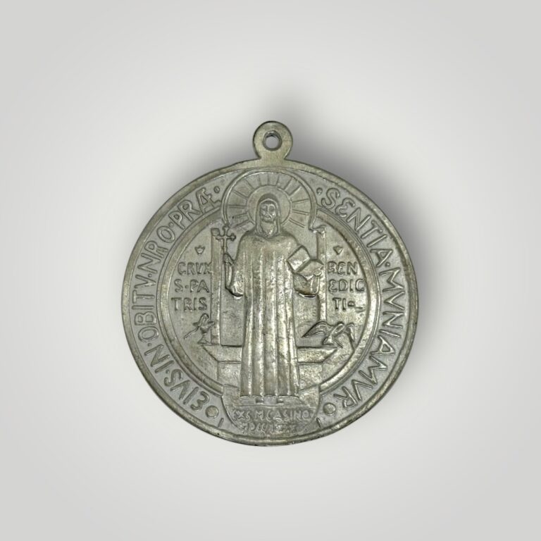 Medalla religiosa de San Benito, símbolo tradicional de protección y fe cristiana.