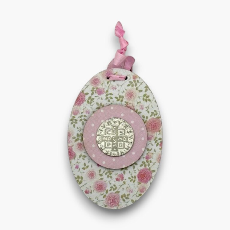 Cunero con medalla de San Benito, ideal para acompañar y proteger desde los primeros momentos. Realizado en madera y metal, combina delicadeza y significado en una pieza especial.