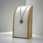 Este conjunto está íntegramente fabricado en acero quirúrgico, lo que asegura una pieza totalmente hipoalergénica, resistente al agua y que mantiene su brillo plateado original sin oscurecerse con el tiempo. El diseño incluye una medalla circular con la representación de la Medalla de San Benito y su respectiva imagen en relieve, acompañada de una cadena de 50 cm de largo.