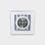 Presentado en marco blanco con fondo en distintos colores, que aporta calidez y estilo clásico.