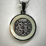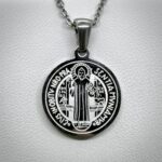 Medalla religiosa de San Benito, símbolo tradicional de protección y fe cristiana.