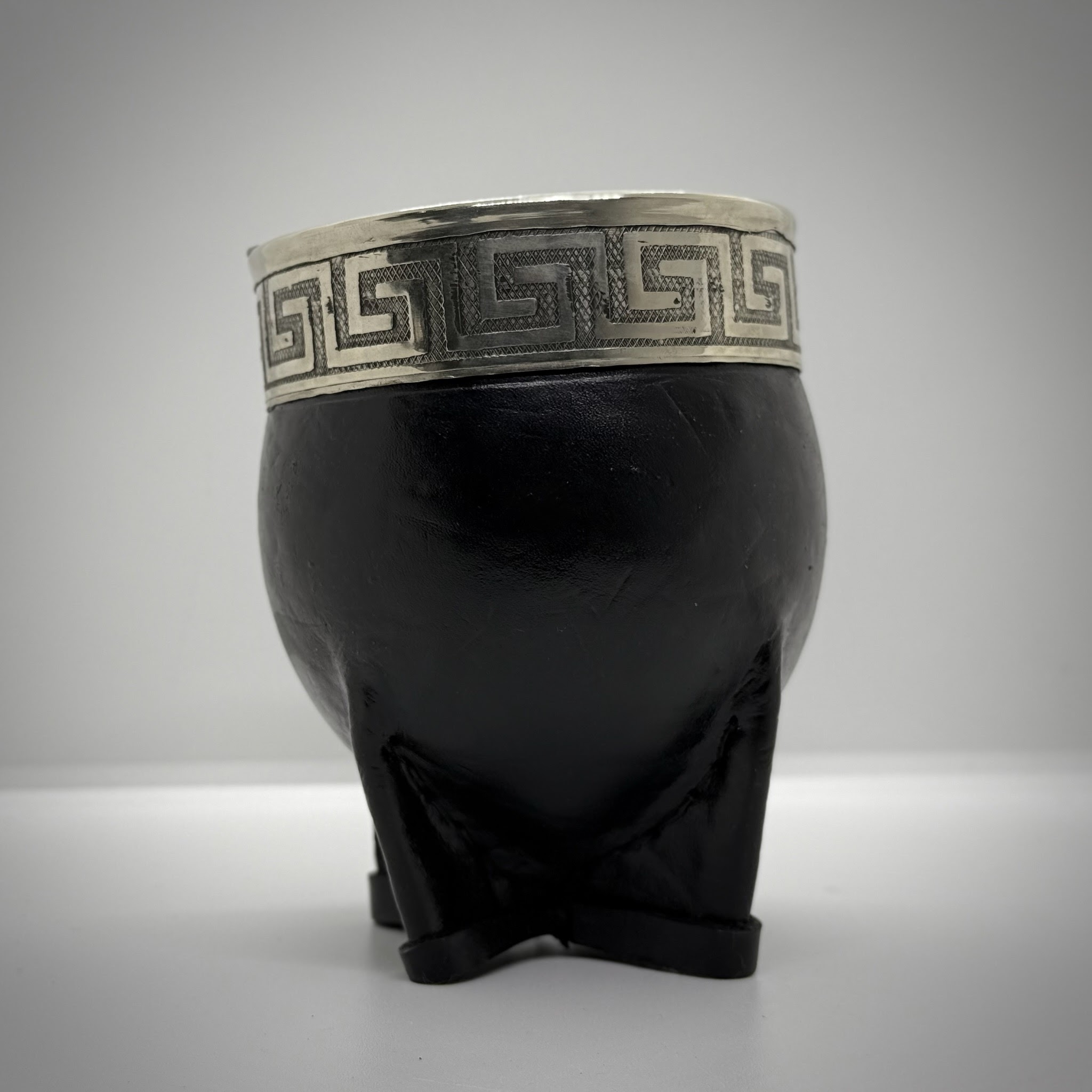 Elaborado en calabaza natural, recubierto en cuero y con borde en alpaca, que le aportan un estilo tradicional y elegante. Incluye la medalla de San Benito en la parte superior.