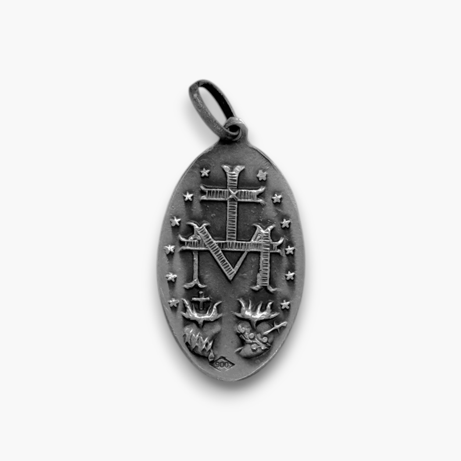 Medalla de la Virgen de la Medalla Milagrosa, una de las advocaciones marianas más queridas dentro de la devoción católica, representada con los brazos abiertos como signo de gracia y protección.