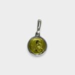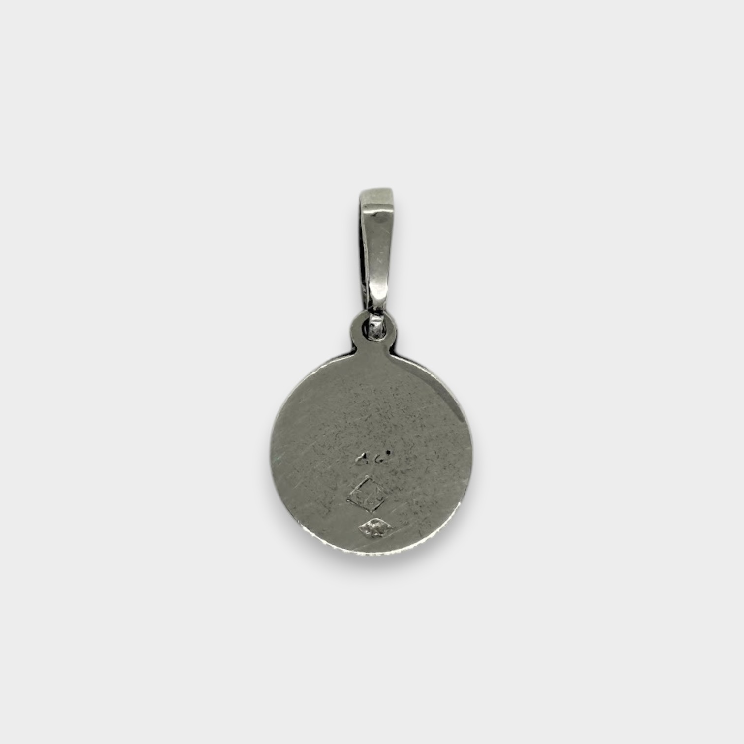Medalla circular delicadamente elaborada en plata 925 con un aplique central en dublé de oro que resalta la figura de la Virgen en oración, brindando un contraste cálido y distinguido. Por su tamaño y significado es ideal para acompañar y proteger desde los primeros momentos.