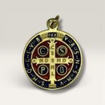 - En la parte inferior, el medallón con la imagen de San Benito y sus inscripciones características.