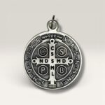 Medallones Clasicos de San Benito.Medalla de San Benito en madera, con diseño tradicional y cinta para colgar. Presenta en su frente la reconocida cruz y las inscripciones protectoras propias de la medalla benedictina. Muy utilizada en hogares y negocios.