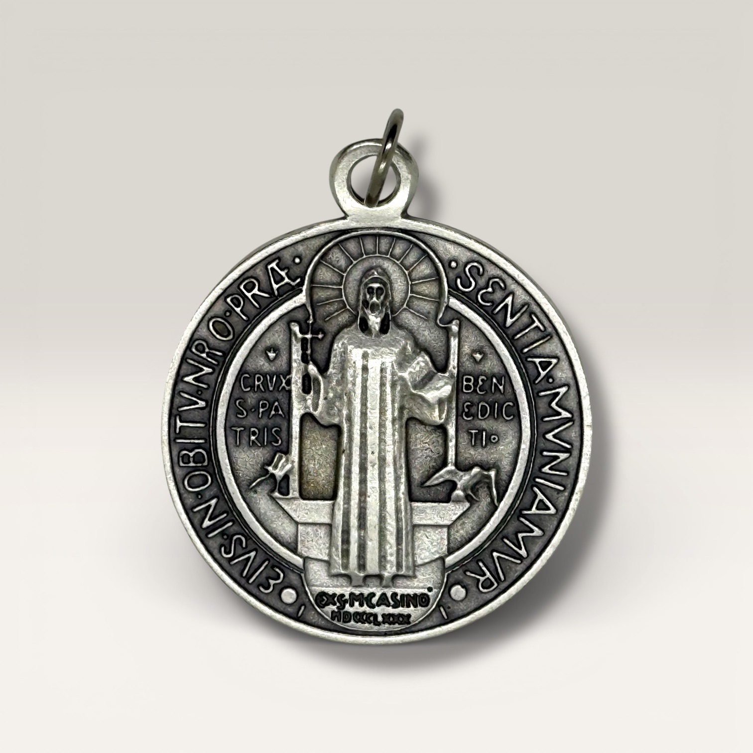 Medallones Clasicos de San Benito.Medalla de San Benito en madera, con diseño tradicional y cinta para colgar. Presenta en su frente la reconocida cruz y las inscripciones protectoras propias de la medalla benedictina. Muy utilizada en hogares y negocios.