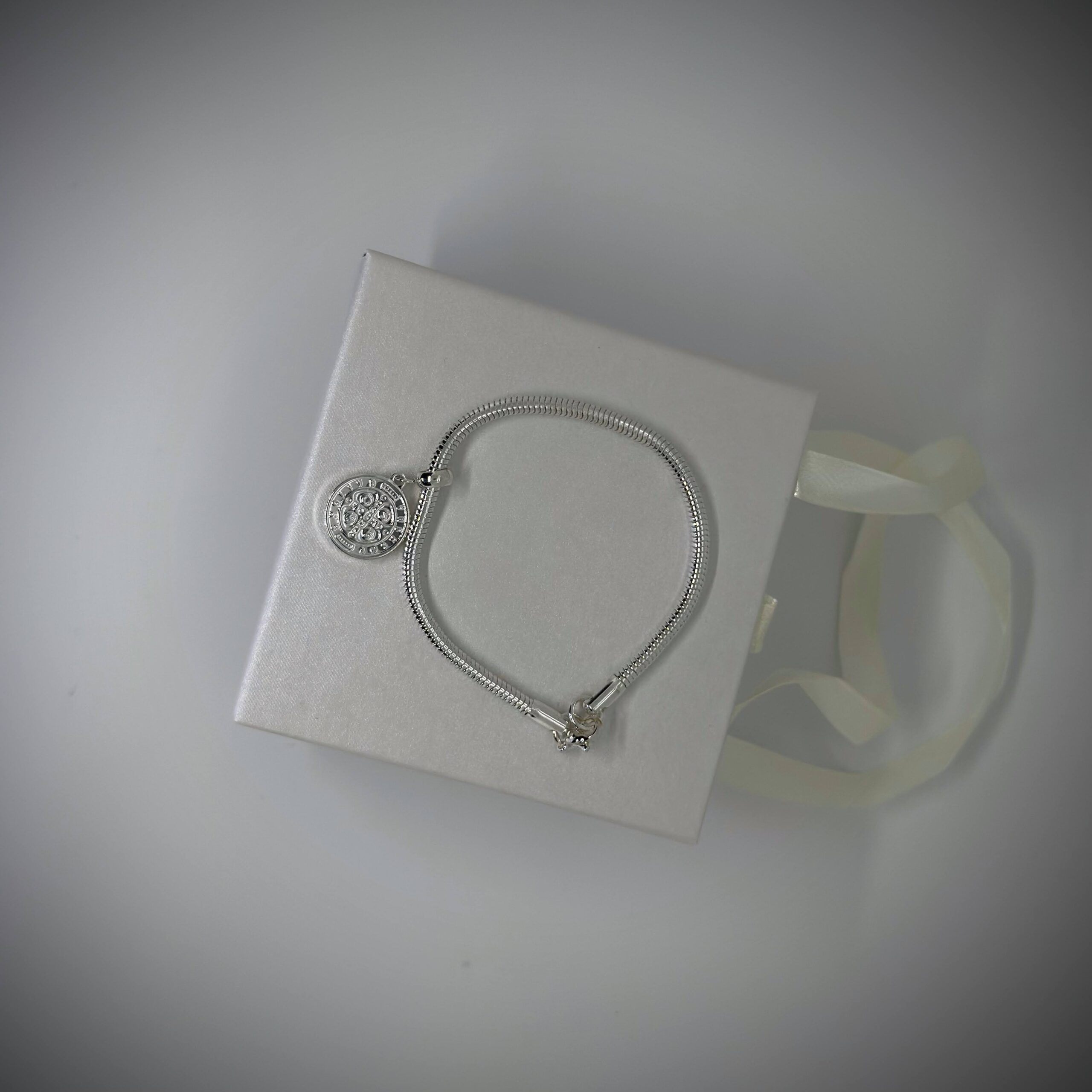 Pulsera estilo Pandora con Medalla de San Benito
