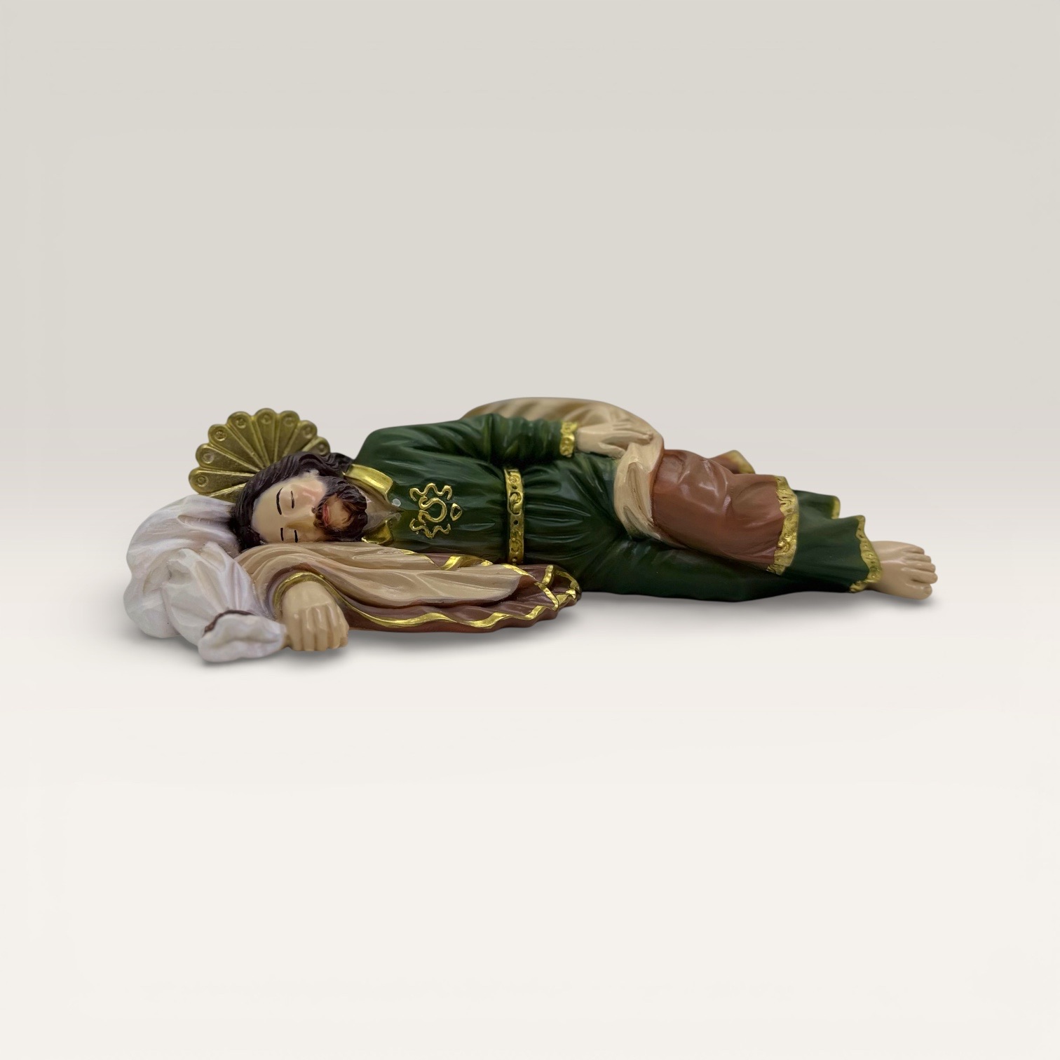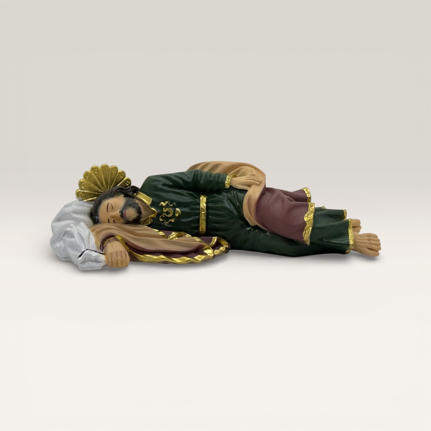 Medallón religioso realizado en yeso, pintado y terminado a mano. Representa a San Benito de perfil, con detalles cuidadosamente trabajados y acabado en tonos cálidos y dorados que realzan la imagen.