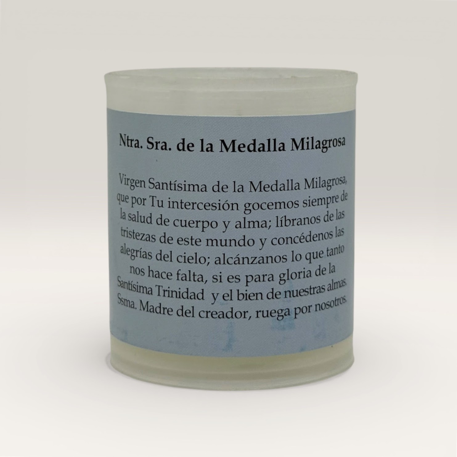 Vela religiosa presentada en vaso plástico común y práctica, ideal para uso diario.
