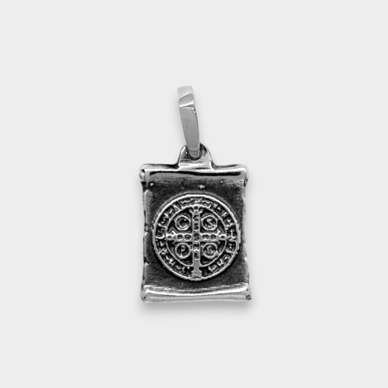 La Medalla de San Benito es mucho más que un objeto de devoción; es un poderoso símbolo de fe y protección que nos recuerda la presencia constante de Dios en nuestra vida. Su diseño en forma de pergamino evoca la tradición de la Regla de San Benito, invitándonos a vivir con el corazón orientado hacia la paz y el bien.