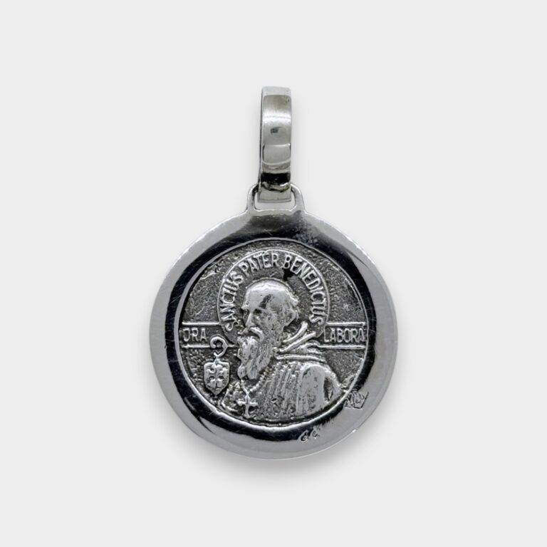 La Medalla de San Benito es mucho más que un objeto de devoción; es un poderoso símbolo de fe y protección que nos recuerda la presencia constante de Dios en nuestra vida.Esta medalla de diseño exclusivo se destaca por su delicado borde con detalles en relieve, realizada íntegramente en plata 925. Ideal para ser llevada diariamente como una protección personal o para obsequiar a un ser querido.