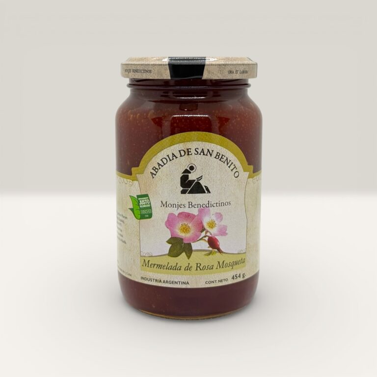 Mermelada de durazno elaborada artesanalmente por los monjes benedictinos de la Abadía de Jauregui, Luján. Preparada siguiendo recetas tradicionales que conservan el sabor auténtico y la textura natural de la fruta.