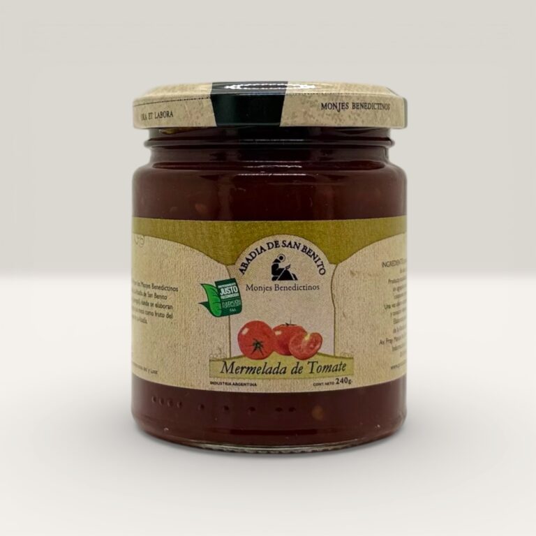 Mermelada de durazno elaborada artesanalmente por los monjes benedictinos de la Abadía de Jauregui, Luján. Preparada siguiendo recetas tradicionales que conservan el sabor auténtico y la textura natural de la fruta.