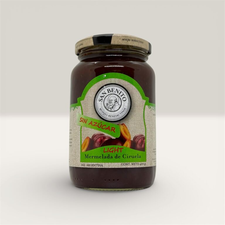 Mermelada de ciruela elaborada artesanalmente por los monjes benedictinos de la Abadía de Jauregui, Luján. Preparada siguiendo recetas tradicionales que conservan el sabor auténtico y la textura natural de la fruta.
